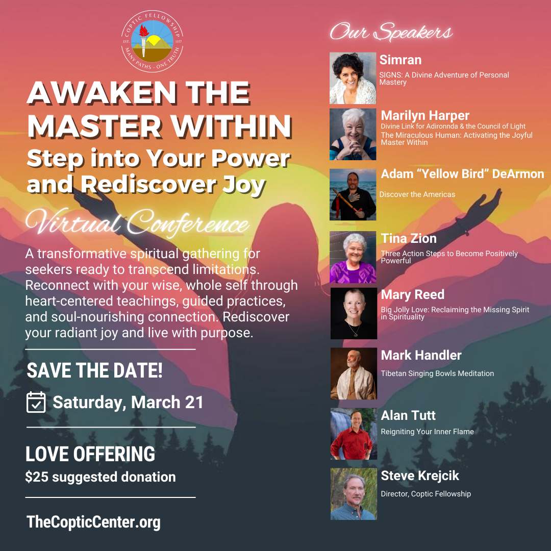 Date Mar 21, 2026 Time All Day Virtual Conference – AWAKEN THE MASTER WITHIN – Step Into Your Power and Rediscover Joy REGISTRATION COMING SOON! Facebook X Email Share this event + Add to Google Calendar + iCal / Outlook export 00 days 00 hours 00 minutes 00 seconds